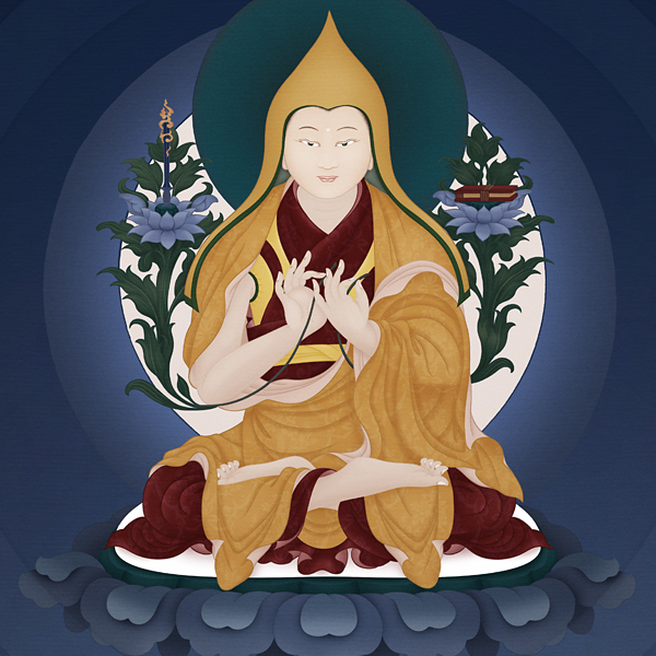 Je Tsongkapa, also known as Je Rinpoche Lobsang Drakpa, was perhaps the single greatest commentator in the 2,500-year history of Buddhism. He was born in the district of Tsongka in eastern Tibet and took his first vows at a tender age. As a teenager, he had already mastered much of the teachings of Buddhism and was sent by his tutors to study at the great monasteries of Central Tibet. Here he studied under the leading Buddhist scholars of his day; it is said as well that he enjoyed mystic visions in which he met and learned from the different forms of the Buddha himself.