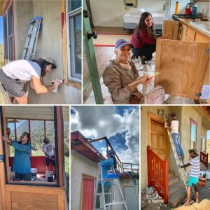A flurry of volunteer brushwork and teamwork is underway with Carmello, Irla, Saci, and Daniel.