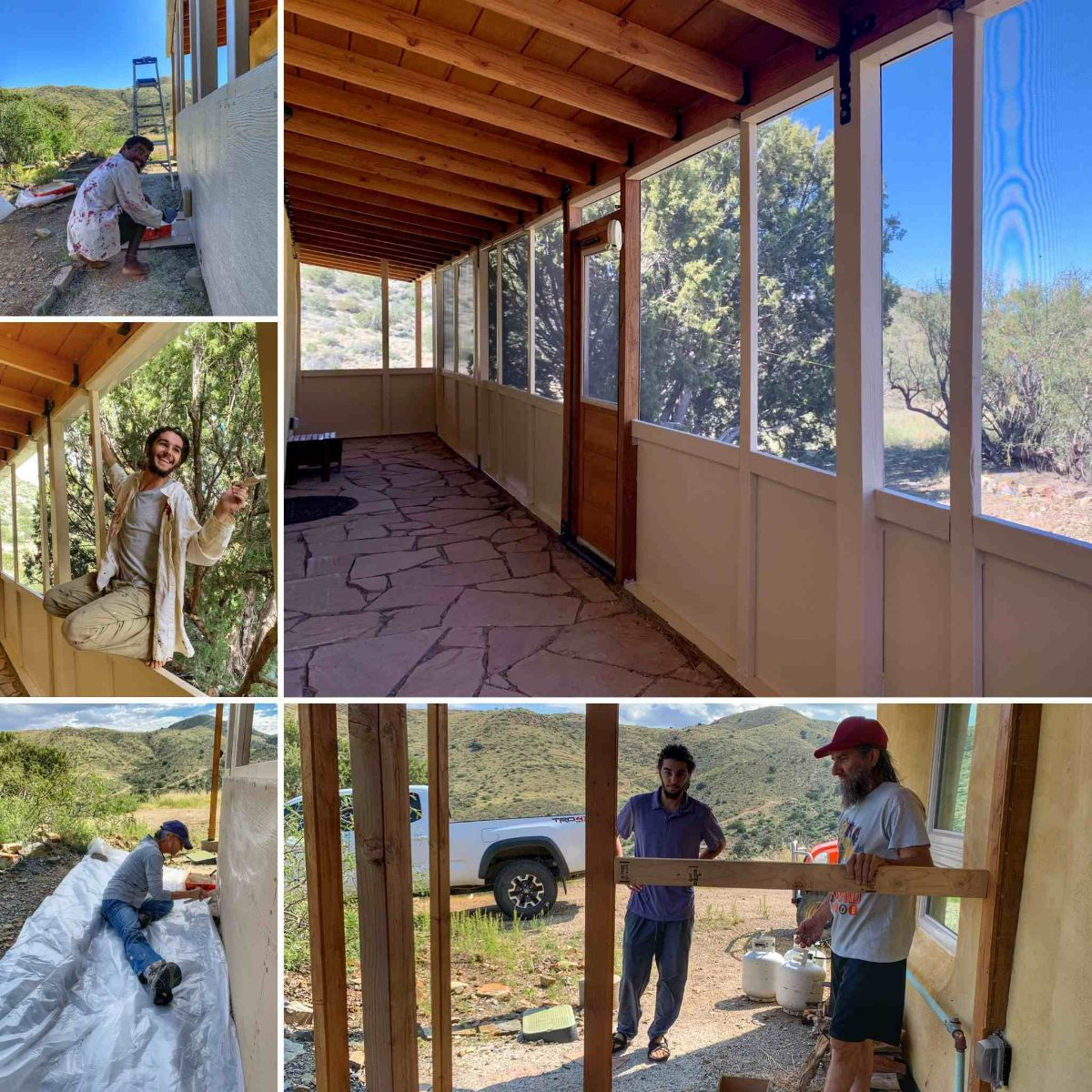 John and Jack build the porch with the painting crew of Saci and Daniel putting on the finishing touches. The new porch at cabin 9 provides a relaxing spot to have tea and listen to songbirds or meditate. Enough space to get your yoga on as well! Or take a delicious nap, we won’t judge.:)