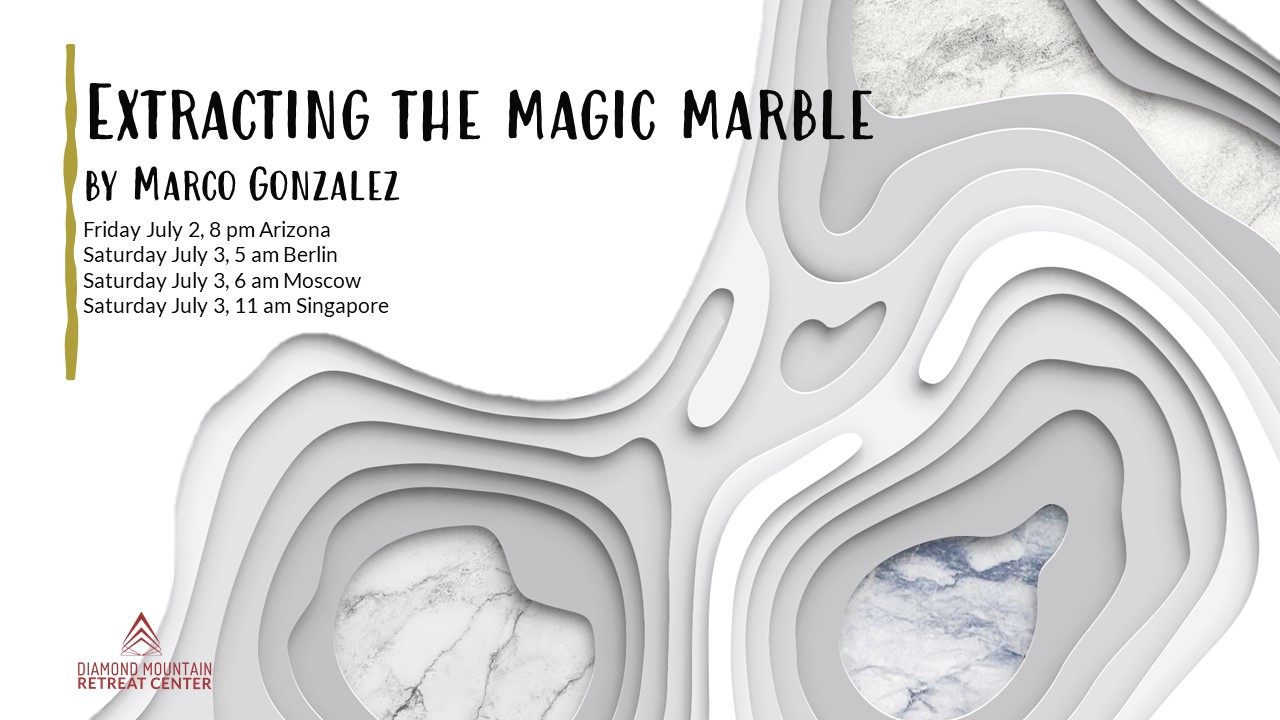 "Extracting the magic marble" by Marco Gonzales *** Friday July 2, 8 pm Arizona *** Saturday July 3, 5 am Berlin *** Saturday July 3, 6 am Moscow *** Saturday July 3, 11 am Singapore