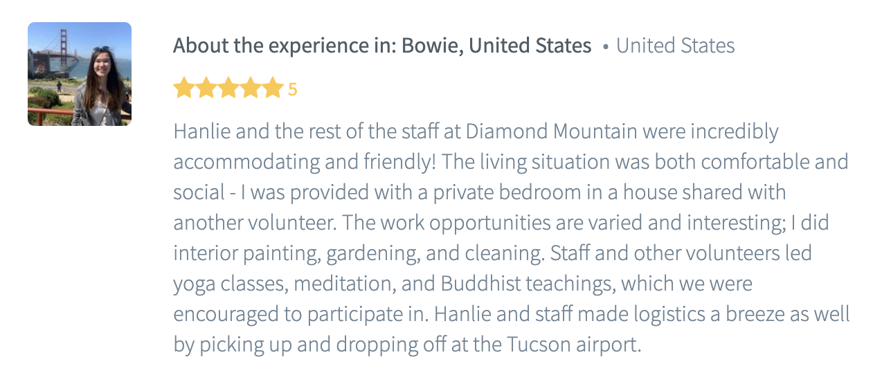 Volunteers serve 30 hours per week on average, in the areas of hospitality and cleaning, maintenance, landscaping, cooking or special event-based projects. Weekends are free to relax, meditate, and explore local attractions. If you’re looking to go deeper in your own practice and connect with a supportive community of practitioners, this is the perfect opportunity.